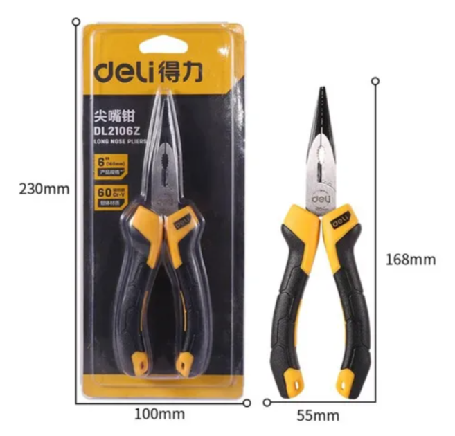 Deli- Pinza Profesional Nariz Larga Recta 6” Acero Edl-2106z